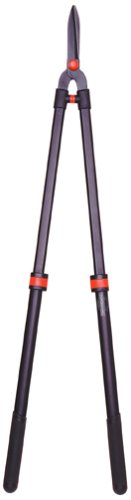 This Shark Corporation 30-to-46-inch telescopic pruner features an ingenious flip-lock extension mechanism that allows the device to grow from 31 to 46 inches with a single-handed flip of a lever. It is adjustable to the desired length for hedge trimming, container gardening to reach high tree branches, trimming the insides of bushes, and cutting overgrown thorn bushes. It cuts branches up to 3/8-inch in diameter. It's manufactured from the finest high-carbon Japanese steel, and this extremely sharp blade features a unique design and cutting lengths for pruning and shaping shrubs and hedges. The blades are pressed, sharpened and double tempered for long-lasting sharpness. This hedger features lightweight aluminum handles extruded in oval for added strength and round handles with soft elastomer grip for comfort.