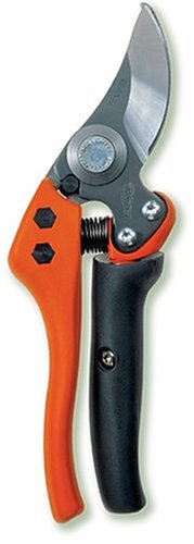 The Bahco bypass pruner is a professional grade tool ideal for pruning and training vines and fruit trees, with a medium-sized, high-tech design that is both comfortable to use and powerful enough for the serious gardener. This pruner is made with 8-inch fiberglass-reinforced handles that are lighter than aluminum but as durable as steel; the ergonomically designed rotating lower handle reduces friction and protects the hand against blisters and fatigue, making this pruner extremely comfortable to work with. The large blades on these pruners can cut stems and branches up to 3/4-inch thick. This pruner also features a one-hand steel button locking mechanism.