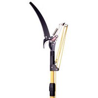 Hardened steel blade. Leverage action. Non-stick coated blade. Built-in by-pass lopper. Fiberglass pole 12'.